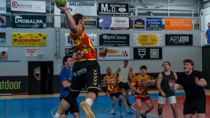 C'est une rencontre Entreprise X Étudiants lors d'un tournoi de hand.